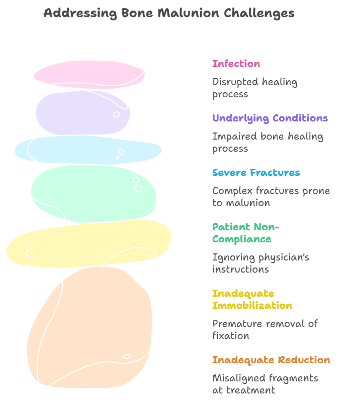 Several factors can contribute to the development of malunion: